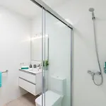 Bathroom facilities also include a shower and a washing machine. A hairdryer and towels are included for added comfort.